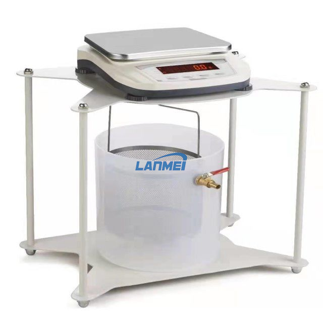 Bestående af en specialbygget robust ramme designet til at understøtte den elektroniske balance. Den nederste del af rammen indeholder en bevægelig platform, der bærer vandtanken, der tillader testprøverne at blive vejet i både luft og vand.